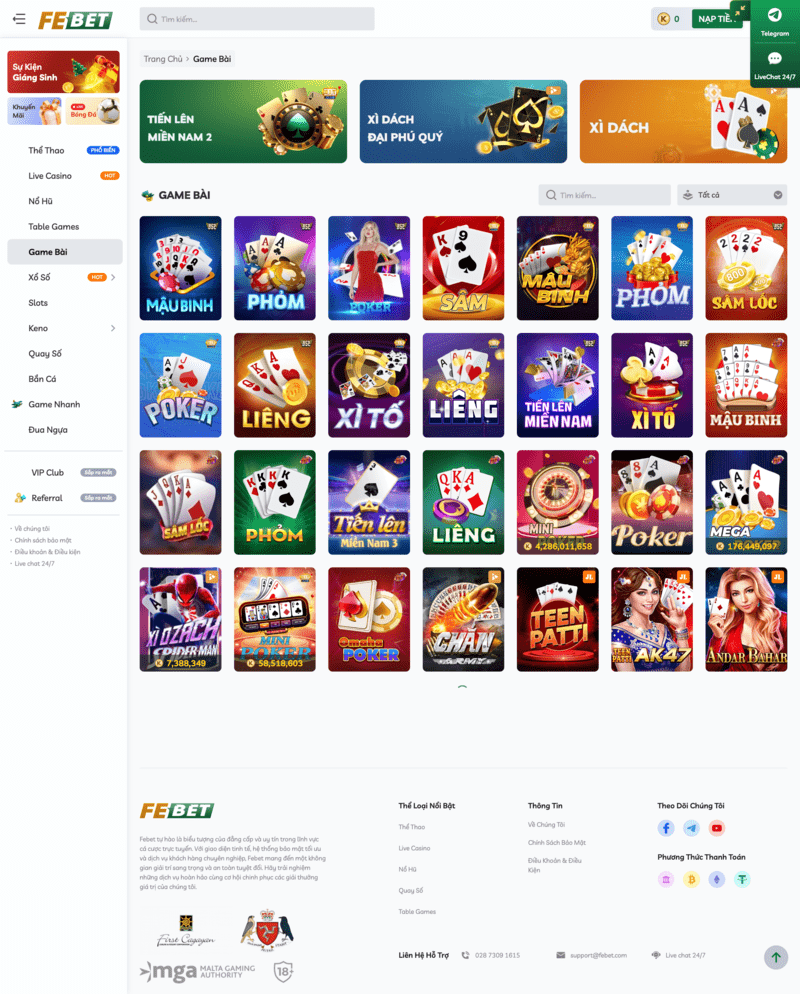 Tại FEBET, bạn sẽ tìm thấy kho game khổng lồ với đủ mọi thể loại từ thể thao, casino, slot, bắn cá cho đến xổ số, đá gà…